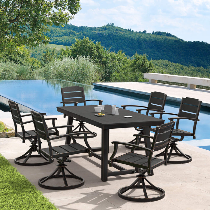 This dining set is not just furniture. It’s a place for connection, where family and friends come together to share food and laughter. With its clean lines and practical design, it brings warmth and life to any outdoor space.